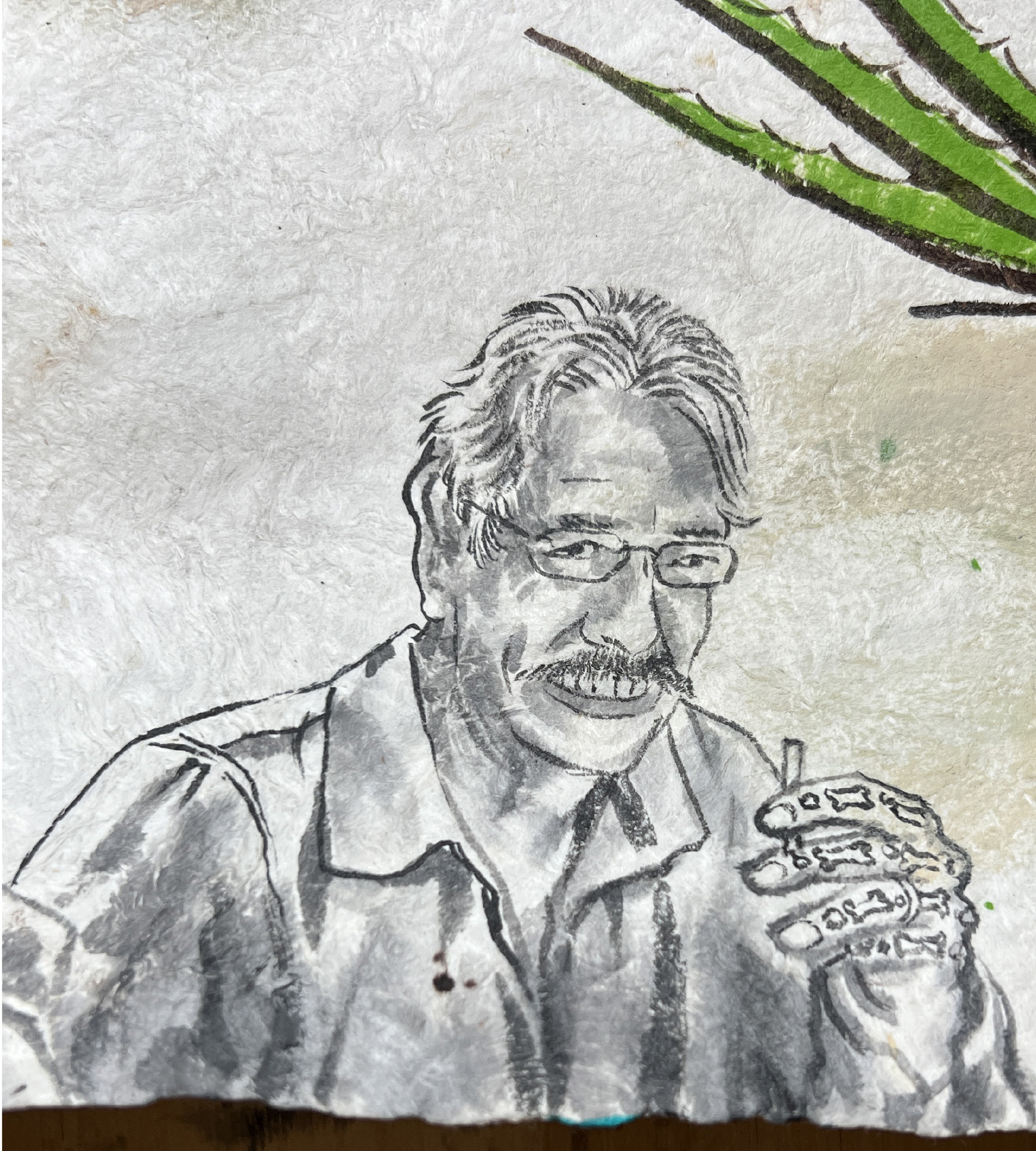 Tardamos casi un año, ya que, a tan difícil tarea, había que sumarle el hacer 282 retratos en pequeño formato de todas las personas que se subieron a una tarima durante el evento, o que estuvieron directamente involucrados en su gestión, como fue el caso de Juan José Bremer. El resultado fueron cuatro pliegos de papel amate que incluían referencias geográficas y animales en extinción, pintados magistralmente por Patricia Henriquez.