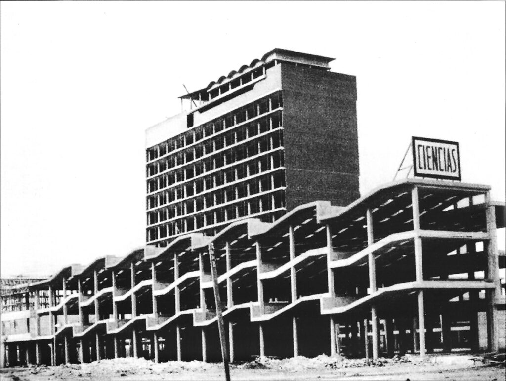 Por otro lado, la Facultad de Ciencias se instaló a principios de 1954 en el Campus Central de Ciudad Universitaria, conocido como Las Islas, en el edificio que ocupó en la parte central, junto a la Torre de Ciencias, hoy Torre 2 de Humanidades. En esta sede se realizaron los primeros exámenes profesionales en Ciudad Universitaria. Desde entonces, los departamentos de Biología, Física y Matemáticas han estado reunidos, mientras que los institutos correspondientes de manera provisional ocuparon parte del edificio de la antigua Torre de Ciencias. La Facultad permaneció ahí durante veintitrés años.