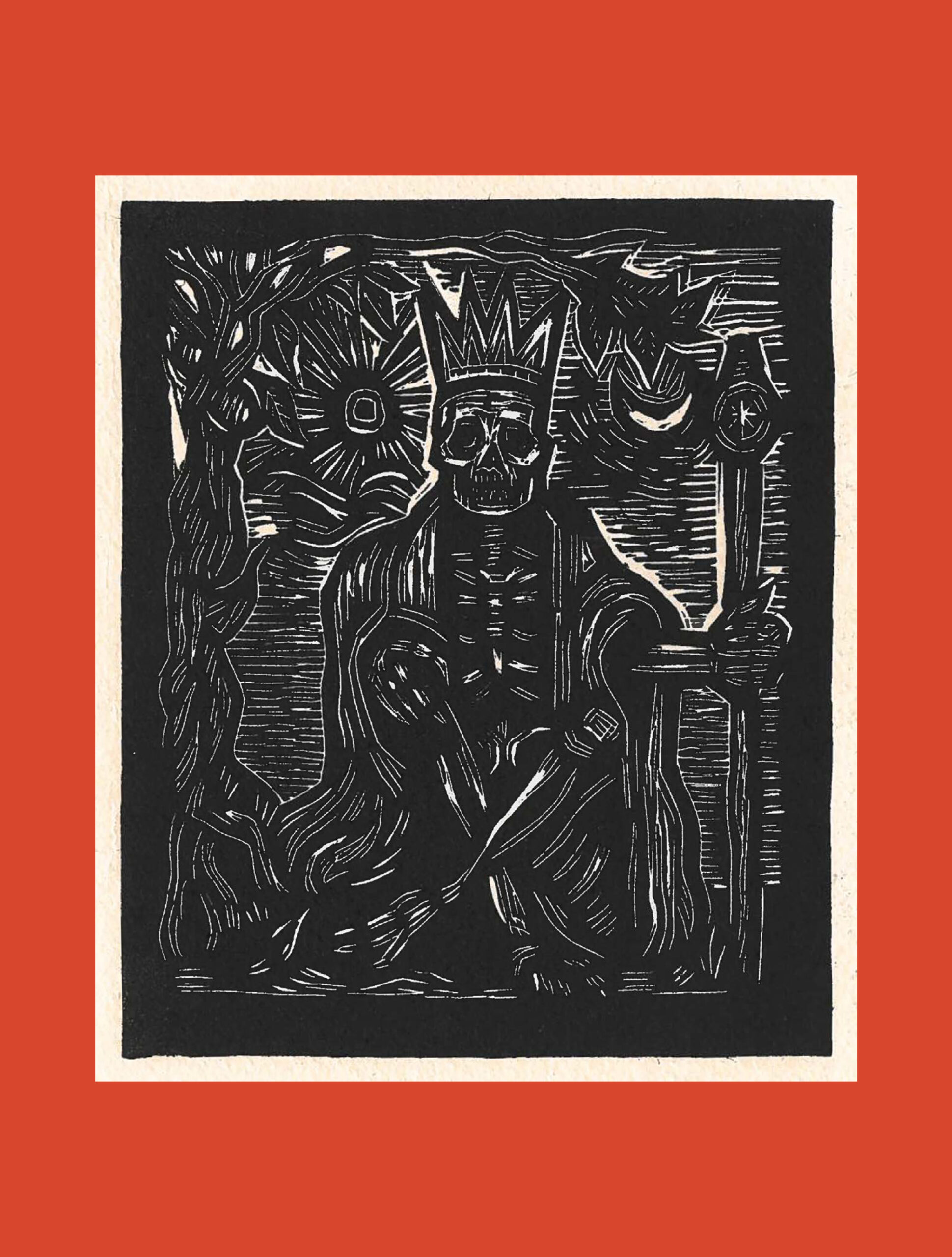 B. Pío Primley, Rey San Pascual, impresión de linóleo, 2024.